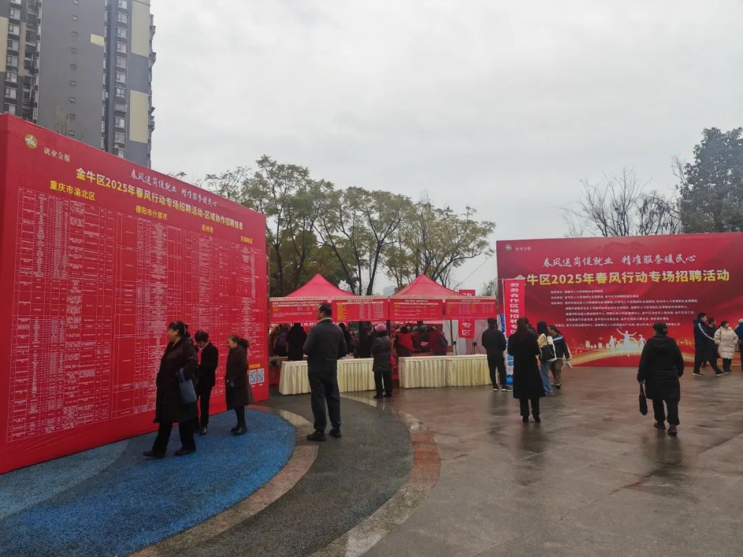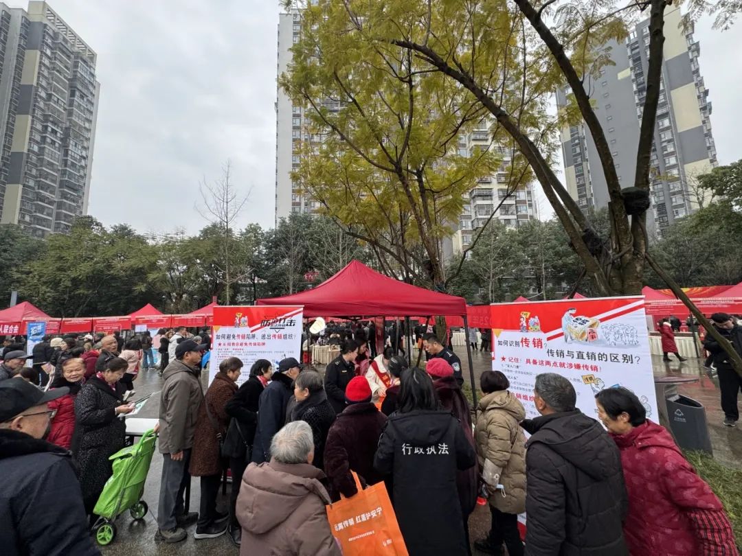 为提高广大求职者对传销的警惕性和认知度,维护劳动者合法权益,2025年2月20日,成都市金牛区市场监管局以“金牛区2025年春风行动专场招聘活动”为契机,联合成都市金牛区人民检察院、成都市公安局金牛区分局在金牛区天回镇天龙南三路万圣家园AB广场开展打击防范传销宣传活动。