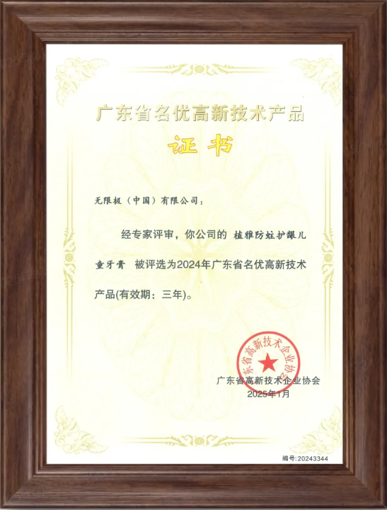 近日,广东省高新技术企业协会颁发了2024年广东省名优高新技术产品证书,无限极(中国)有限公司旗下三款产品——养固健利清通宣畀方固体饮料、萃雅菁颜眼霜、植雅防蛀护龈儿童牙膏获“2024年广东省名优高新技术产品”称号,体现了评审专家们对无限极研发实力和技术创新能力的充分认可。
