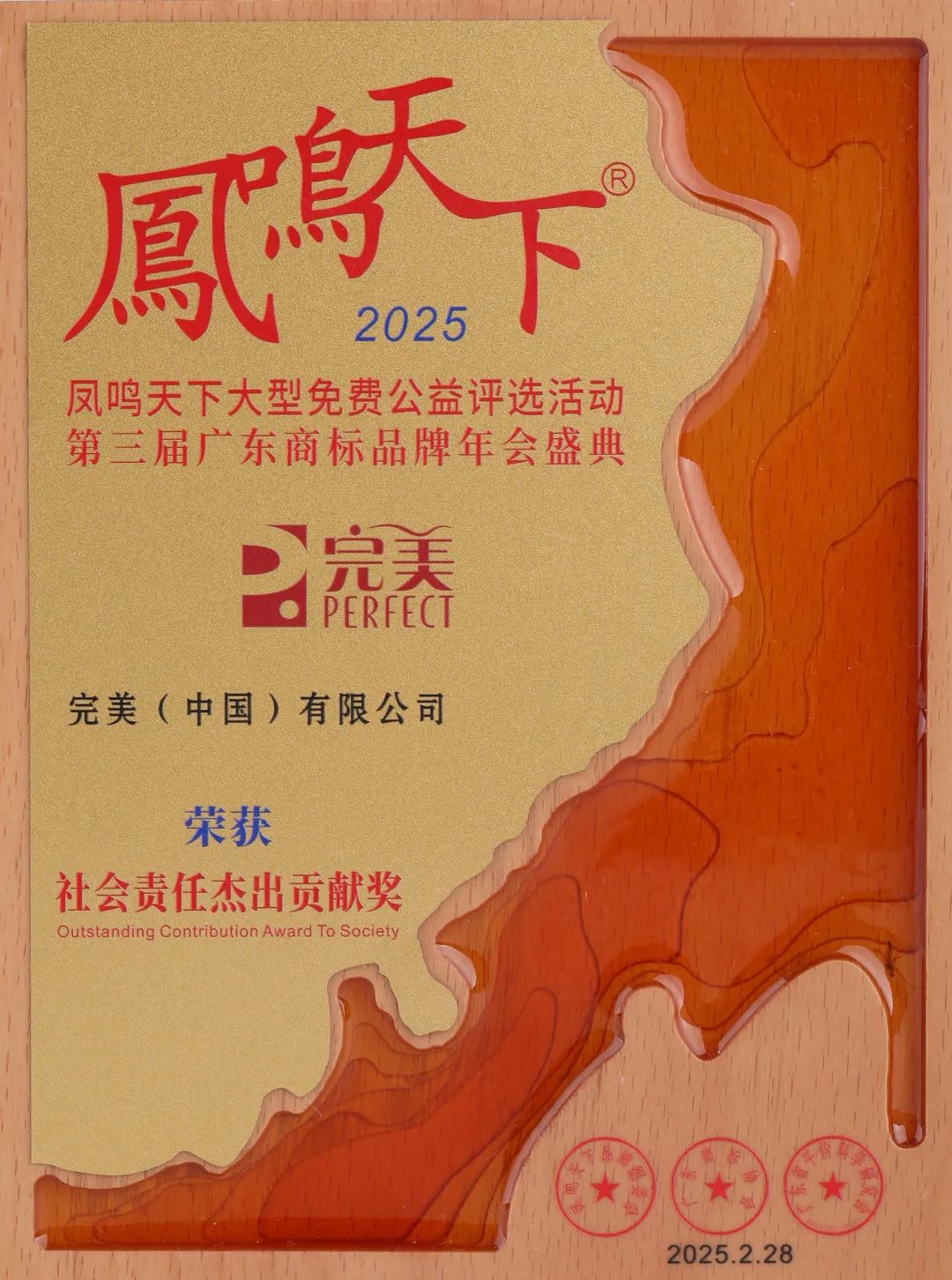 “2025凤鸣天下大型免费公益评选活动”是由凤鸣天下品牌组委会与广东商标协会、广东省评价科学研究会联合支持,旨在表彰在行业内影响力广泛、贡献突出的企业。此次荣誉的颁发不仅是对完美公司品牌实力的高度认可,亦是对其践行“中国产品向中国品牌转变”战略的生动诠释。