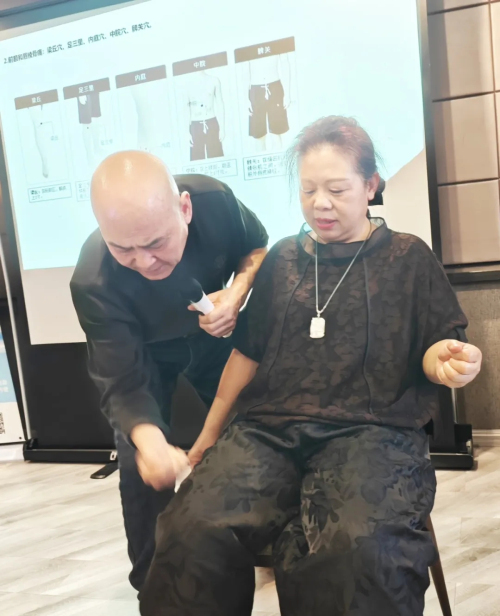 完成充实的理论知识学习后,为巩固学习效果,石老师别出心裁地设计了体验式演练环节。他邀请伙伴配合,在演示过程中,一边熟练操作,一边细致讲解技术要点,将抽象知识具象化,让伙伴们更直观地掌握专业健康管理技能。
