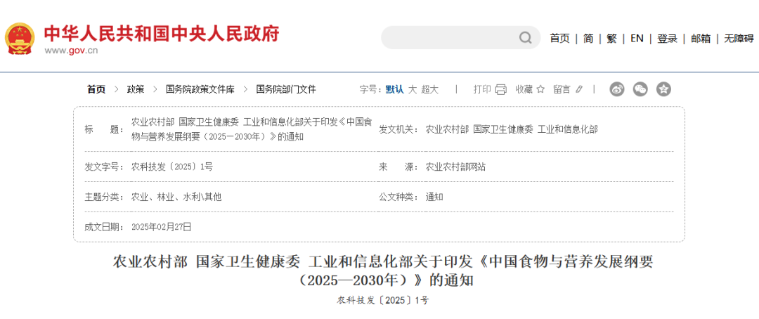 《中国食物与营养发展纲要(2025—2030年)》