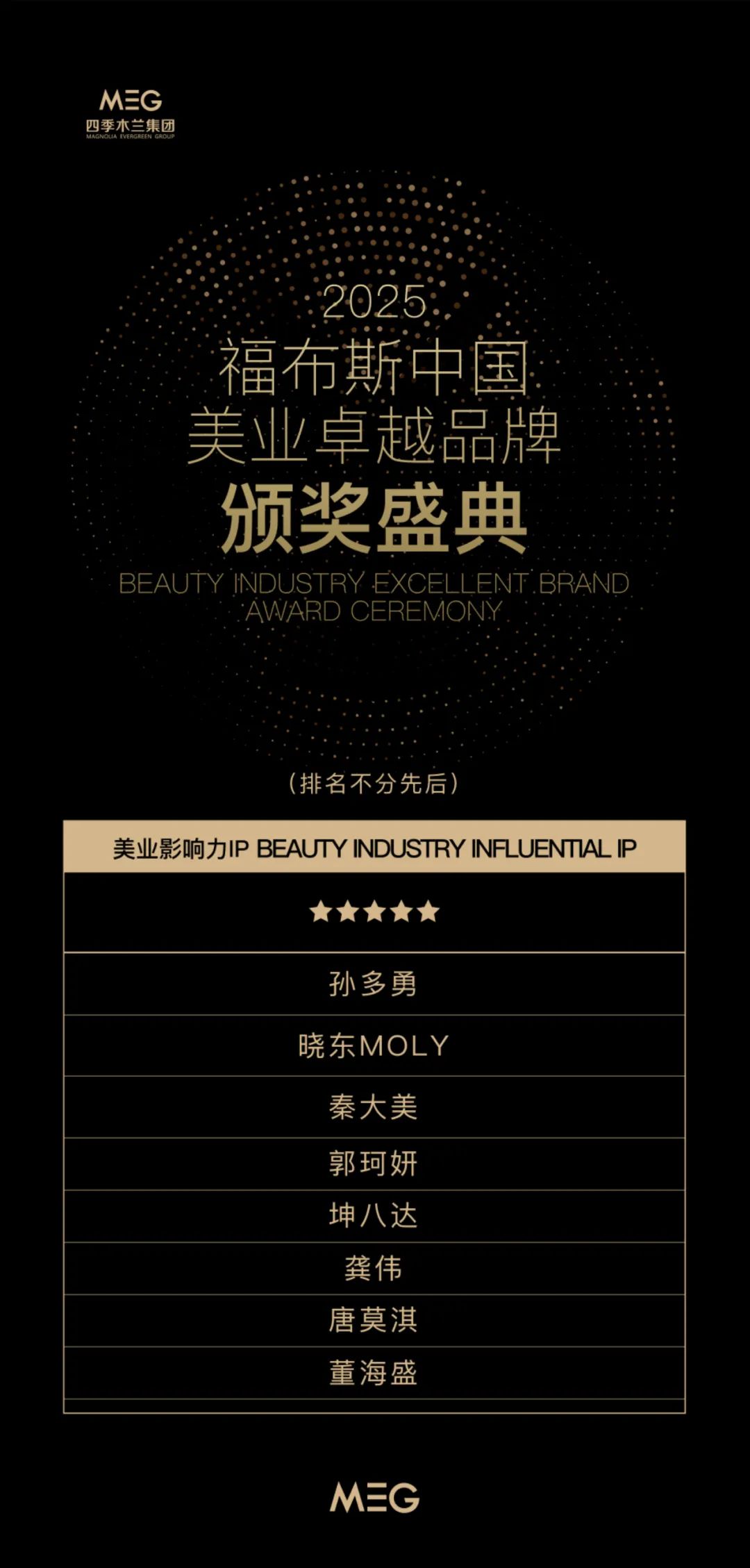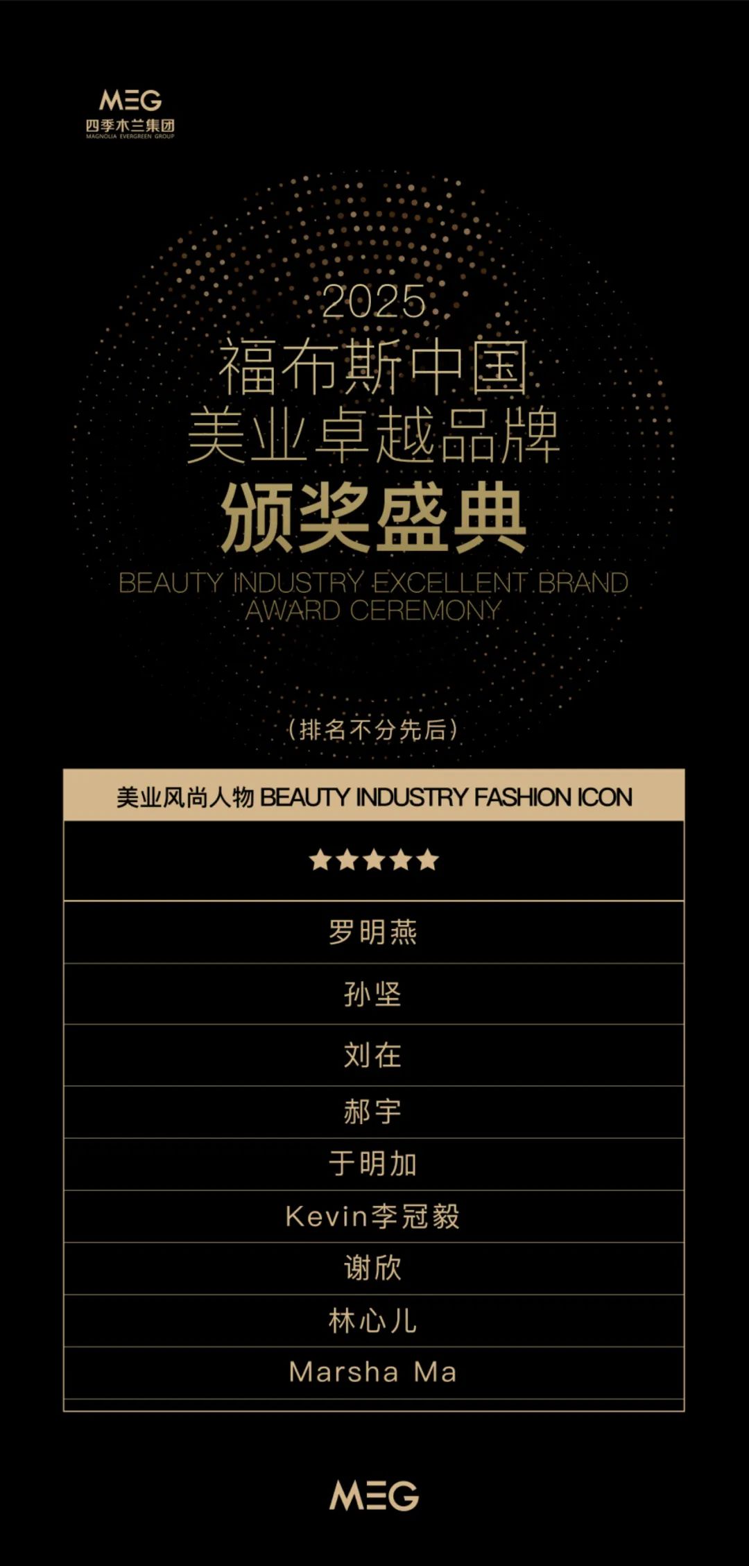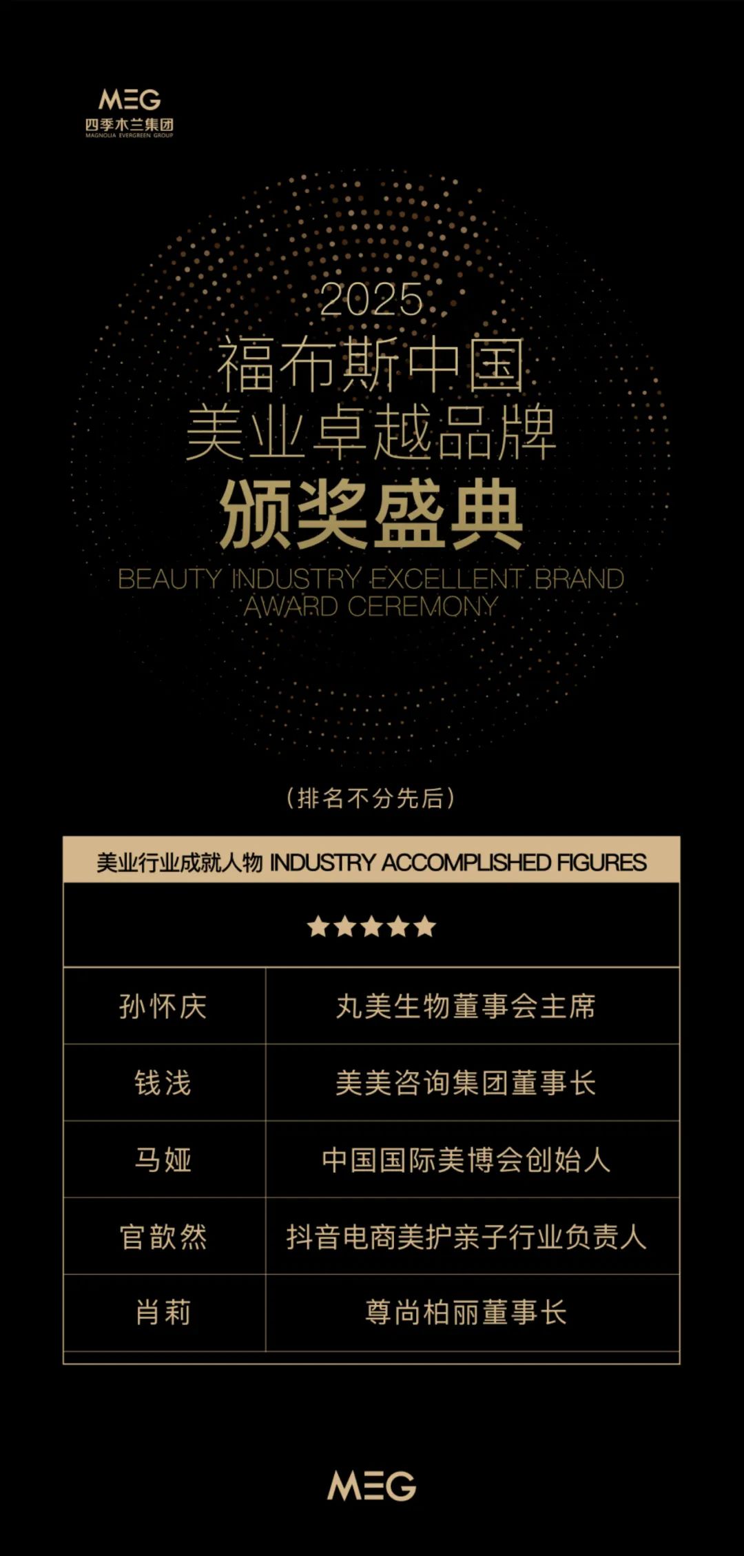 2月28日,由福布斯中国与四季木兰集团联合发起的“2025福布斯中国美业卓越品牌颁奖盛典”在沪隆重举办。