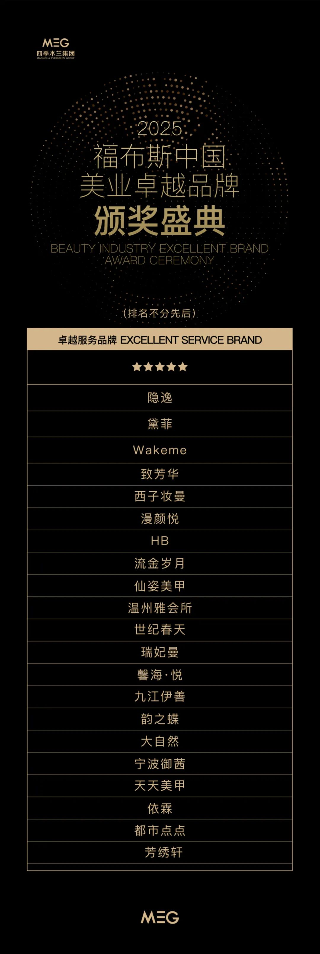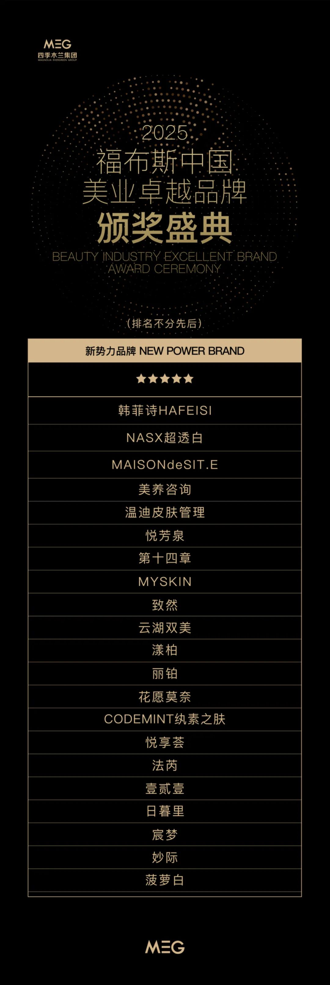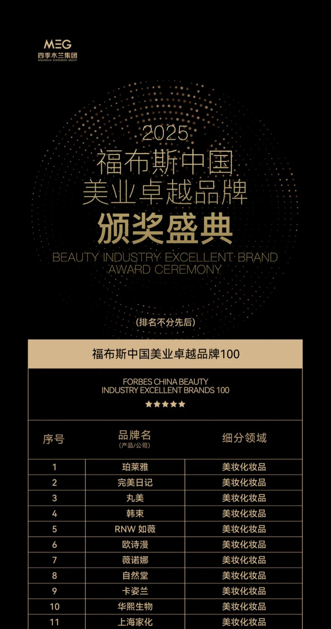 2月28日,由福布斯中国与四季木兰集团联合发起的“2025福布斯中国美业卓越品牌颁奖盛典”在沪隆重举办。