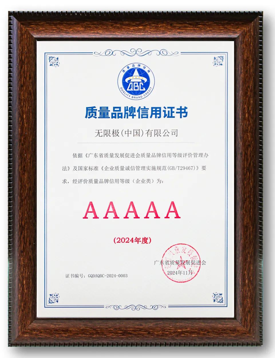 去年11月,在新华网客户端、中国质量报刊社·中国质量新闻网、中国食品药品企业质量安全促进会等共同主办的“第七届高质量发展交流会”上,无限极凭借在质量管控方面的卓越表现第三次成功入选“质量金盾案例”,为行业树立质量典范新标杆。同月,在由广东省质量发展促进会首次举办的2024年度质量品牌信用等级评价活动上,无限极凭借质量管理水平、品牌建设、社会信用等多方面的优秀表现,获评首批质量品牌信用AAAAA企业。