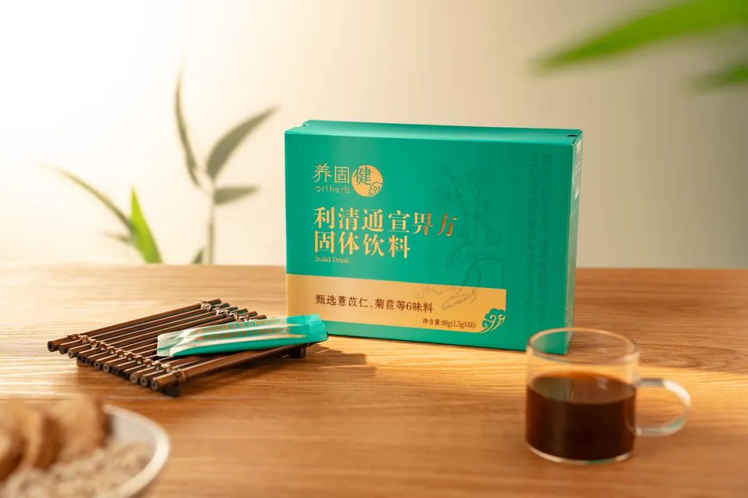 养固健利清通宣畀方固体饮料,采用“东方智慧+现代方法”设计理念,甄选薏苡仁、菊苣等传统本草,搭配现代功能因子海洋鱼蛋白肽+水解酪蛋白肽和明星原料蒙特莫伦西酸樱桃精制而成。其核心原料(海洋鱼蛋白肽、水解酪蛋白肽)应用了2项发明专利技术[1]。为更好地保留抗氧化活性成分,酸樱桃选用先进的低温冷冻干燥工艺,并且在产品成型工艺中应用了行业领先的中草药提取物粉末直压成型物理工艺,减少生产过程高温对酸樱桃的影响。凭借以上优势,该产品及核心技术被专家认定为国内先进水平。