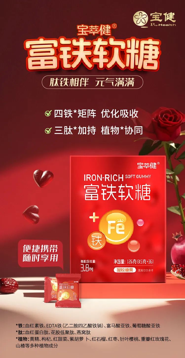 在这个追求健康与美味的时代,宝健匠心独运,为您倾心打造一款颠覆传统补铁认知的健康零食——宝萃健富铁软糖!