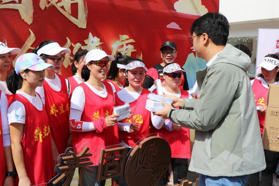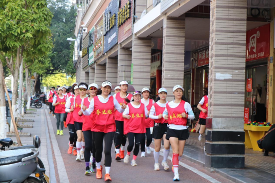 随着活动开始,早已在起点蓄势待发的“养生跑团”鱼贯而出。“养生跑团”由数十名长跑爱好者组成。他们身着统一醒目的红色服装,将绕沙溪而行,途径三家无限极门店,最终回到起点,用行动践行自己的“健康宣言”。