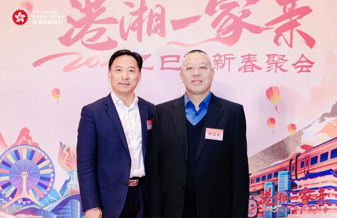 香港特别行政区政府驻武汉经济贸易办事处主任蔡敏君;中共湖南省委统战部副部长、省政府侨办主任刘卫兵,湖南省人民政府港澳事务办公室副主任郭向丽,中共湖南省委教育工委委员、省教育厅党组成员余伟良,湖南省科技厅党组成员、副厅长佟来,湖南省公安厅党委委员、副厅长余良勇,湖南省出入境边防检查总站副总站长丁莉,湖南省商务厅党组成员、副厅长刘素月,湖南省文旅厅党组成员、副厅长龚铁军,中共湖南省委统战部港澳台处处长梁良,湖南省人民政府港澳事务办公室港澳处处长黎冲;香港特别行政区政府驻湖南联络处主任李锦雄;长沙市政协副主席刘金文,中共长沙市委统战部副部长、市侨办主任杨光华,中共长沙市委统战部港澳处处长赵敏等领导出席。香港湖南联谊总会常务副会长、香港长沙联谊会会长、绿之韵集团董事长胡国安与在湘港人和港资企业代表等近200名来宾共聚一堂同贺新春。