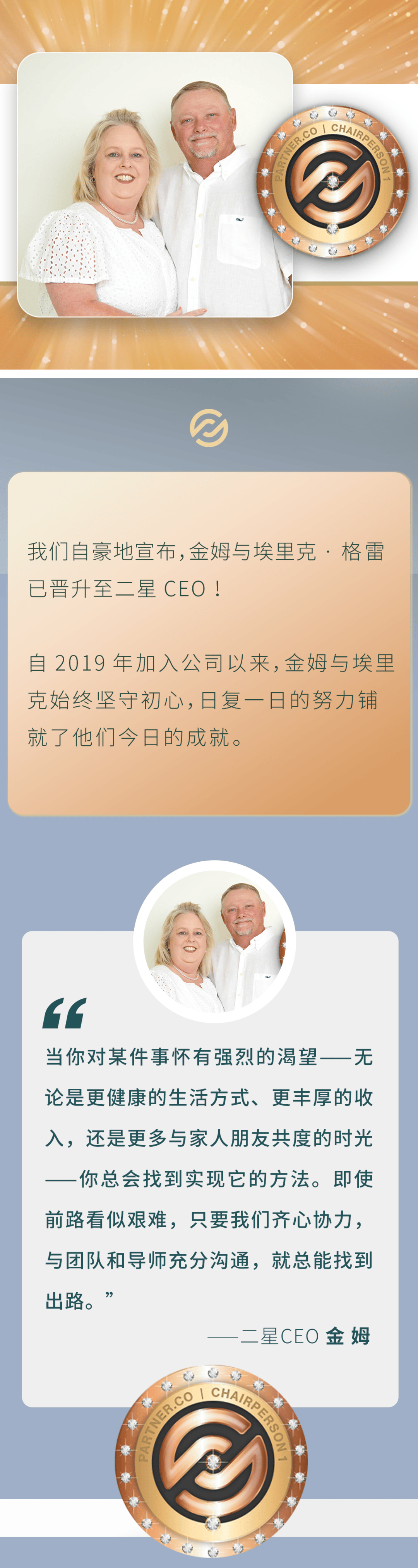 大溪地诺丽 | 金姆与埃里克·格雷晋升二星CEO