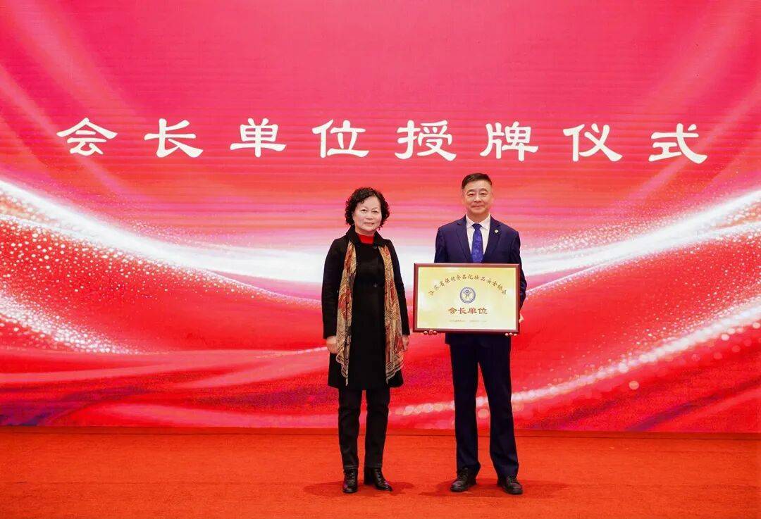 江苏省保健食品化妆品安全协会第二届理事会会长郭桂珍为陈惠授牌