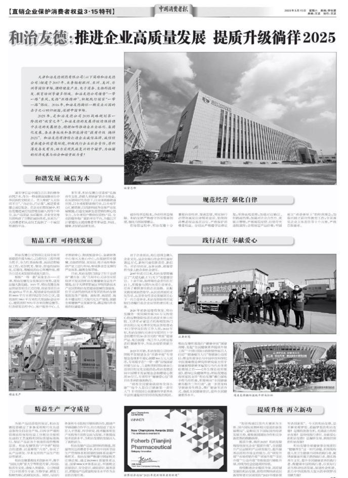 2025年3月15日是第43个国际消费者权益日。2025年全国消协组织消费维权年主题为“共筑满意消费”。3月15日,《中国消费者报》发刊《直销企业保护消费者权益3•15特刊》,对和治友德公司进行专刊报道。