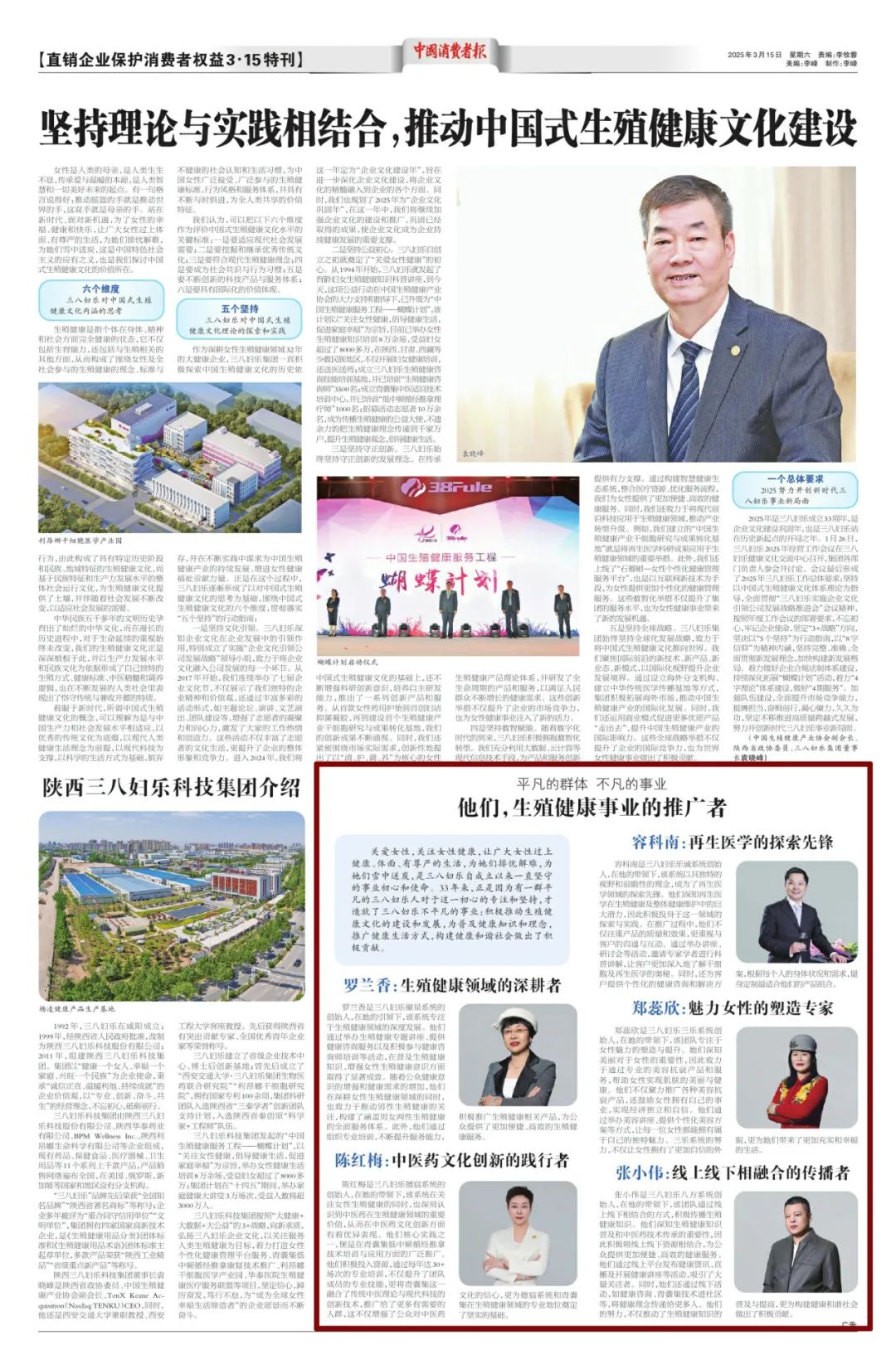 3月15日,《中国消费者报》的“直销企业保护消费者权益3·15特刊”对三八妇乐优秀志愿者代表以《平凡的群体,不凡的事业—他们,生殖健康事业的推广者》为题进行了报道。